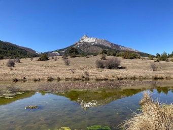 Paysages bucoliques – parfois, on se serait cru en Suisse : prairies vertes et des sommets enneigés à l’horizon, mais ce ciel d’un bleu profond, c’était bien ce ciel provençal qui nous a souvent manqué cet hiver …